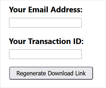 This shortcode will generate a form that asks for the customer’s email address and transaction ID. Upon entering correct details, a new secure download link will be regenerated and displayed, allowing the user to download their purchased item again. See the screenshot below for an example:
